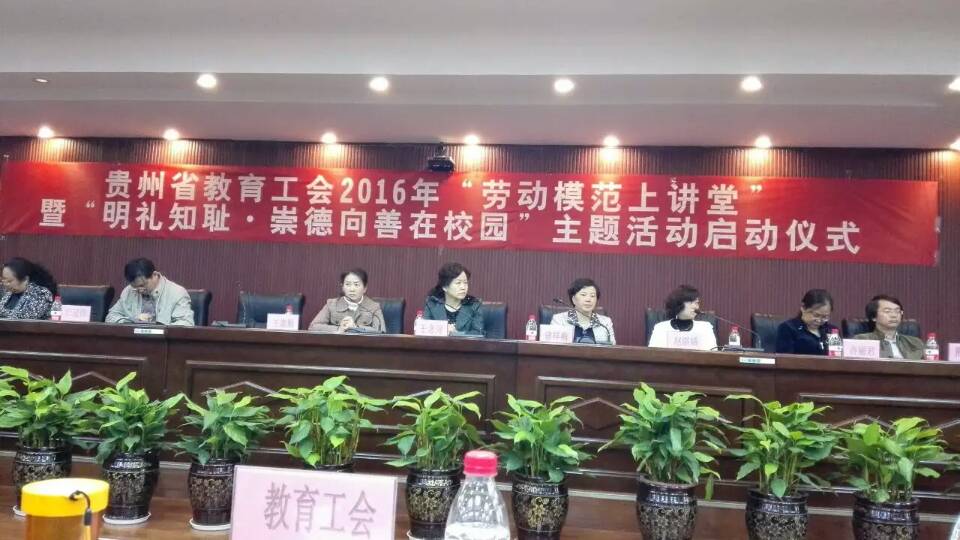 为了大力弘扬劳模精神,扎实推进职工思想道德建设,继续打造好“劳动模范上讲堂”活动品牌,由贵州省教育工会组织的2016年“劳动模范上讲堂”暨“明礼知耻·崇德向善在校园”主题活动启动仪式于4月29日下午2点在贵安新区大学城贵阳中医学院图书馆学术报告厅举行。我校工会主席周吉萍、工会委员会宣传委员张涤参加了启动仪式。
