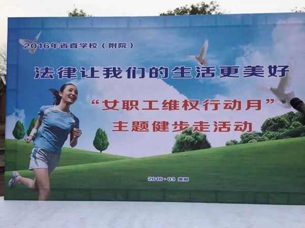 为了宣传普及《反家暴法》,进一步贯彻落实《女职工劳动保护特别规定》,3月27日上午,由省教育工会女职工委员会主办,贵州银行协办的2016年省直学校(附院)法律让我们的生活更美好“女职工维权行动月”主题健步走活动在观山湖公园成功举办,我校30余名女教职工及家属参加了当天活动,最终我校获得一等奖4名,二等奖8名,其余老师也获得了纪念奖。