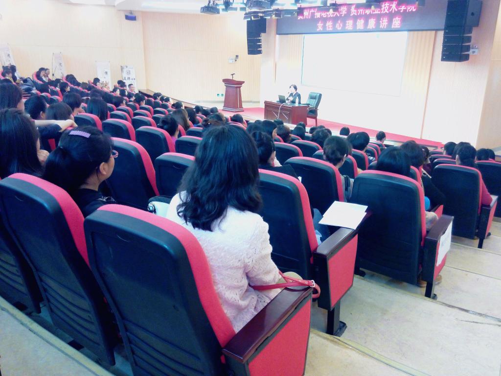 本次讲座邀请贵州师范学院宛蓉教授主讲。宛蓉教授以生动有趣的案例深入浅出地分析了女性在当今社会所面临的心理困惑和压力,引导大家如何具备良好的心态、正确处理和解决日常生活、工作、家庭、婚姻所面临的各类问题。