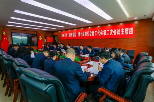 下午16时30分,大会圆满完成各项议程,胜利闭幕。大会主席团执行主席、校长汤健在闭幕辞中指出,本次大会是深入学习贯彻习近平新时代中国特色社会主义思想和贵州省第十三次党代会精神的一次专题会;是学校站在新时代新起点上认真总结成绩,分析当前形势,推进学校高质量发展的一次鼓劲会;是一次凝聚共识、集思广益、汇聚力量、要明确任务的研讨会。全体教职员工要全身心地投入到建设贵州有特色、全国有影响的新型本科大学的生动实践中,以优异成绩迎接党的二十大胜利召开。