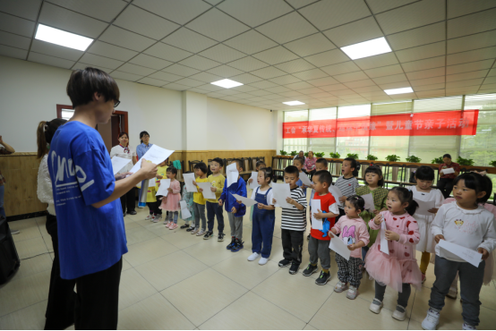 我校艺术与设计学院播音专业的学生向参与活动的小朋友介绍了端午节来历、习俗。带领在场的小朋友朗诵有关端午节的诗词,在吟诵中引导儿童体会传统文化的魅力。
