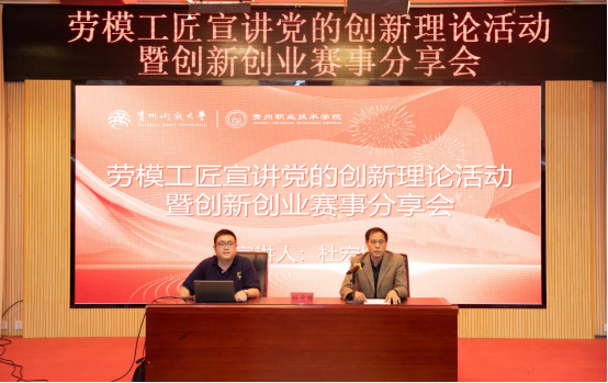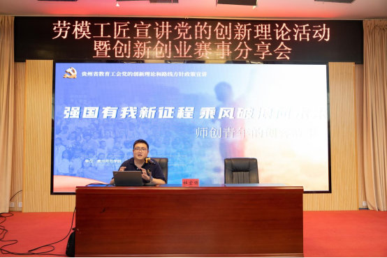 11月8日,由校工会、校团委共同组织,省教育工会劳模工匠宣讲团成员、贵州省先进工作者、贵州师范学院创新创业学院执行院长杜宏博走进我校开展党的创新理论宣讲暨创新创业赛事分享活动,各学院各部门师生代表200余人参加报告会。宣讲活动由校工会主席李晓平主持。
