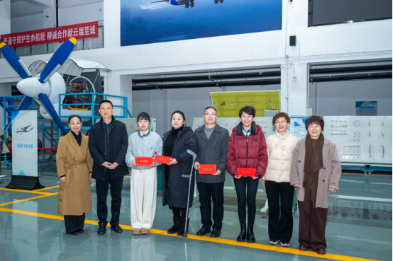 慰问组深入航空学院、建筑工程学院实训基地和体育馆,与教职工们促膝交谈。彭旻同志询问大家的工作、生活与健康状况,话语中满是关切。当了解到困难职工带病仍坚守讲台、默默奉献时,他动情地赞扬这份坚韧与敬业;看到先进工作者们在人才培养、科研创新、服务地方中取得的累累硕果,他由衷地表示祝贺与肯定。他紧握老师们的手,代表省总工会送上饱含心意的慰问,并殷切叮嘱学校工会要持续当好“贴心人”,切实为困难职工排忧解难。彭旻同志深情表示,工会永远是教职工最可信赖的“娘家人”。他强调,必须用心用情用力提升服务保障的温度,尤其要把职工医疗互助保障等民生实事办实办好,做大家坚实的后盾,让每一位教职工在遇到困难时都能感受到组织的温暖与力量。校党委书记令狐彩桃代表全校师生,对省总工会和省教育工会长期以来的深切关怀表示由衷的感谢。她表示,这份“寒冬送暖”的情谊,如春风化雨般温暖了人心,给予了全校教职工巨大的精神鼓舞。令狐彩桃书记表示,学校将在省总工会的指导下,积极服务全省发展战略,深化产业工人队伍建设,加快推进“工匠学院”建设。同时,学校将一如既往地深化对教职工的关心关爱,努力营造和谐温馨的校园氛围,团结带领全体教职工凝心聚智,共同为学校事业的高质量发展注入澎湃动力。